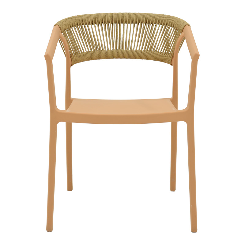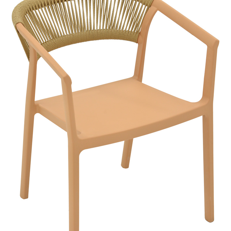 Πολυθρόνα Sillia pakoworld στοιβαζόμενη pp cappuccino απόχρωση με μπεζ rattan 55x52x74.5εκ