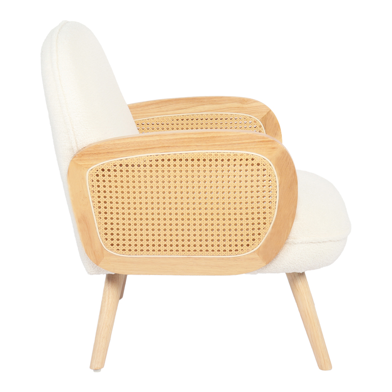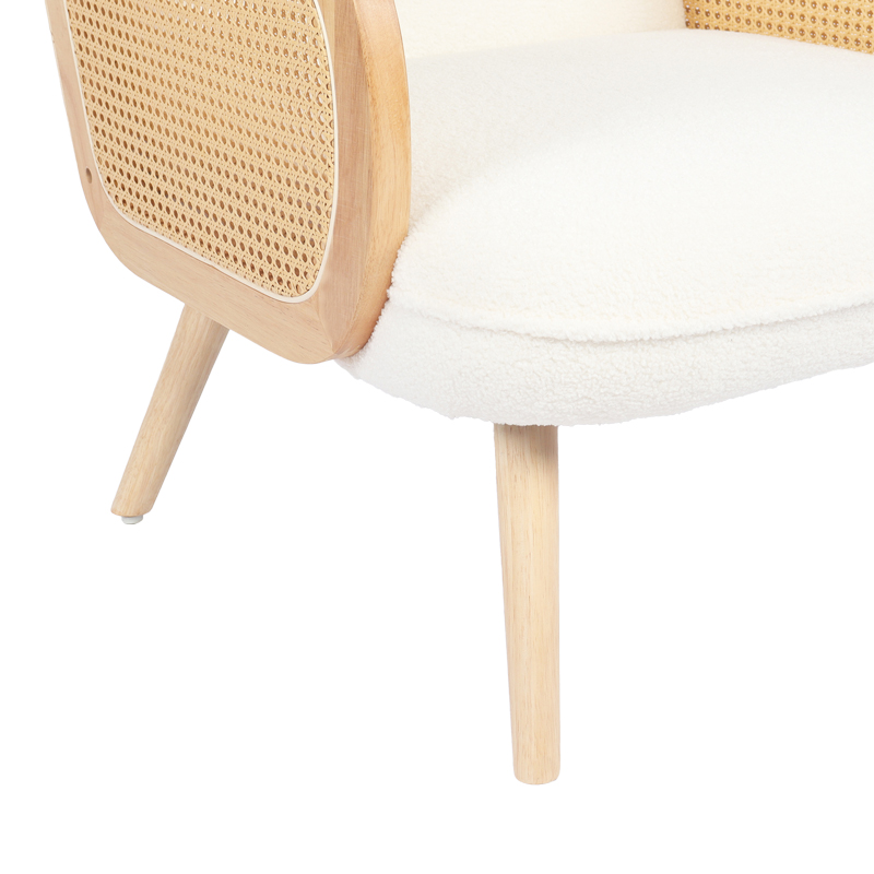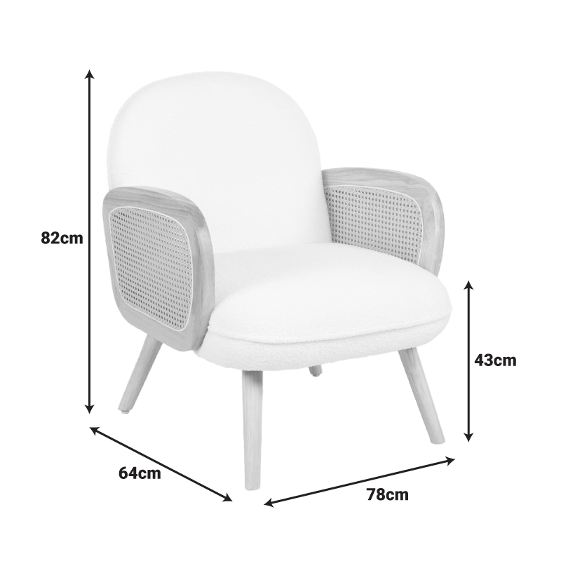 Πολυθρόνα Stedy pakoworld λευκό μπουκλέ ύφασμα με πόδι σε φυσική απόχρωση 78x64x82εκ