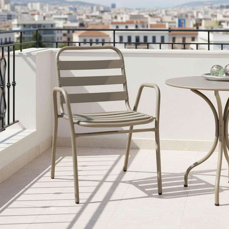 • Σταθερός σκελετός από μέταλλο εξαιρετικής ποιότητας με αντοχή σε φθορά και χρόνο, ενώ τα κομμάτια έδρας και πλάτης είναι κατασκευασμένα από φέτες αλουμινίου. Το μέταλλο παρέχει ανθεκτικότητα και σταθερότητα, ενώ οι φέτες αλουμινίου προσθέτουν ελαφρότητα και μια μοντέρνα αίσθηση στον σχεδιασμό. Η πολυθρόνα αυτή είναι ιδανική για χρήση σε εξωτερικούς χώρους, καθώς η ανθεκτικότητα στις καιρικές συνθήκες του αλουμινίου την καθιστά ανθεκτική σε έκθεση στον ήλιο και την υγρασία.
