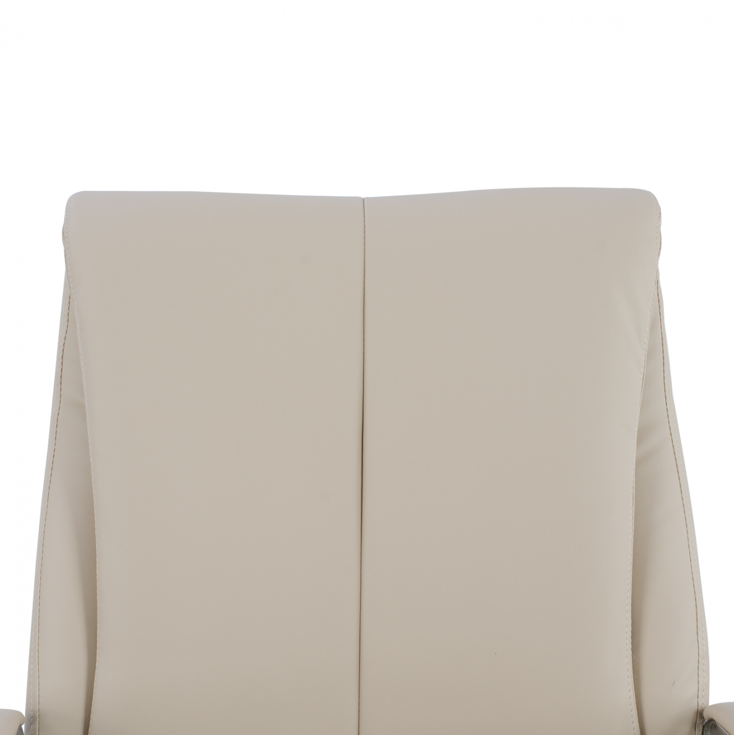 Καρέκλα συνεργασίας με μπράτσα, από υψηλής ποιότητας PU σε εκρού απόχρωση και σκελετό από χρωμιομένο ατσάλι για ύψιστη ασφάλεια, σταθερότητα και αντοχή.