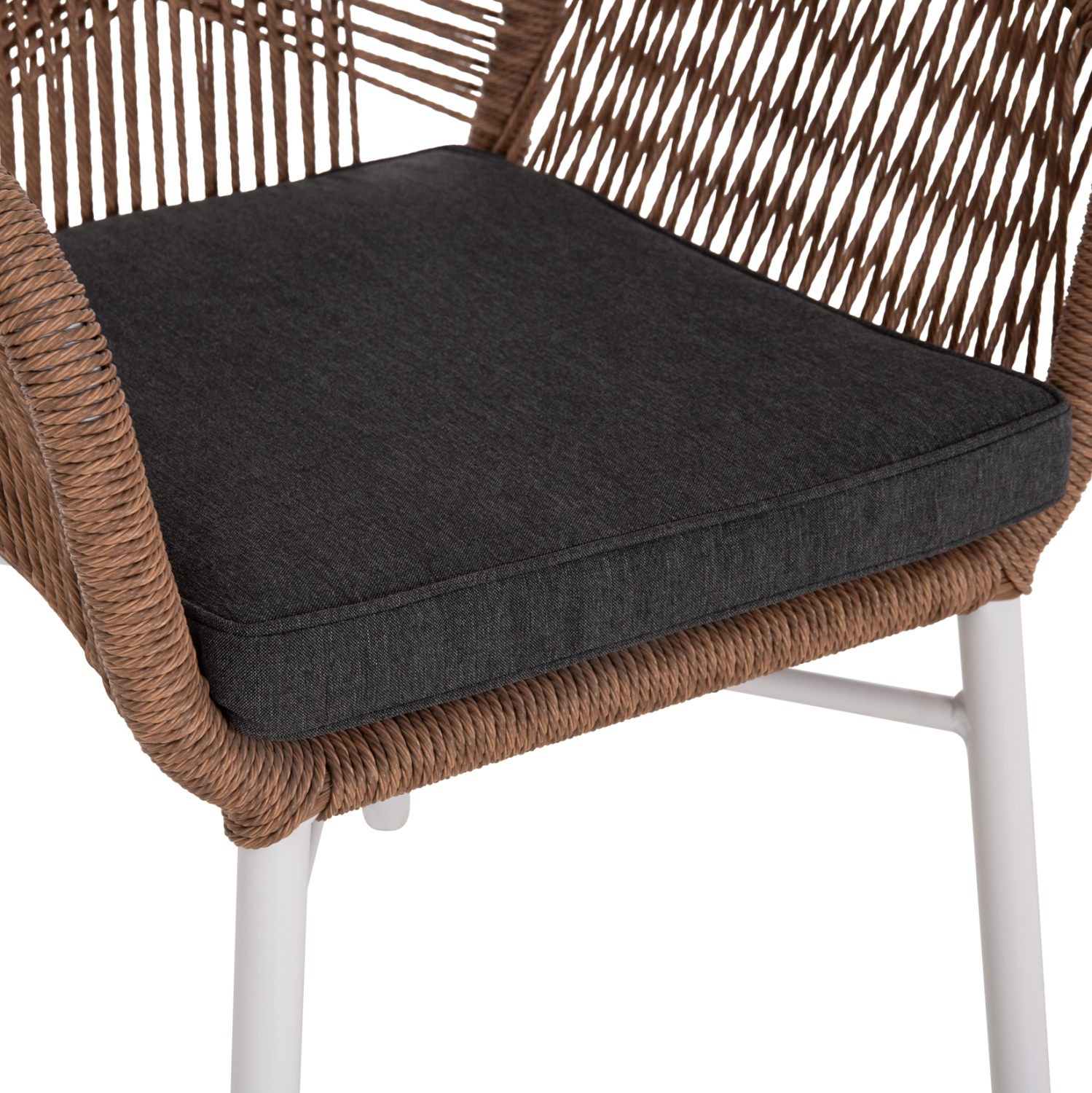 Η πολυθρόνα αλουμινίου TOPIN σε ΛΕΥΚΟ χρώμα, κυρίως για επαγγελματική χρήση, είναι πανέμορφη! Μοντέρνα, άνετη και σταθερή. Ο σχεδιασμός της με την μεσαίου ύψους πλάτη και τα χαμηλά μπράτσα, όλα από ανοιχτό ΚΑΦΕ συνθετικό «τυλιχτό» Rattan (μοιάζει με σχοινί), και το μαξιλάρι καθίσματος σε ΓΚΡΙ χρώμα, θα αναβαθμίσει αισθητικά τον χώρο που θα την τοποθετήσετε και θα τραβήξει τα βλέμματα.