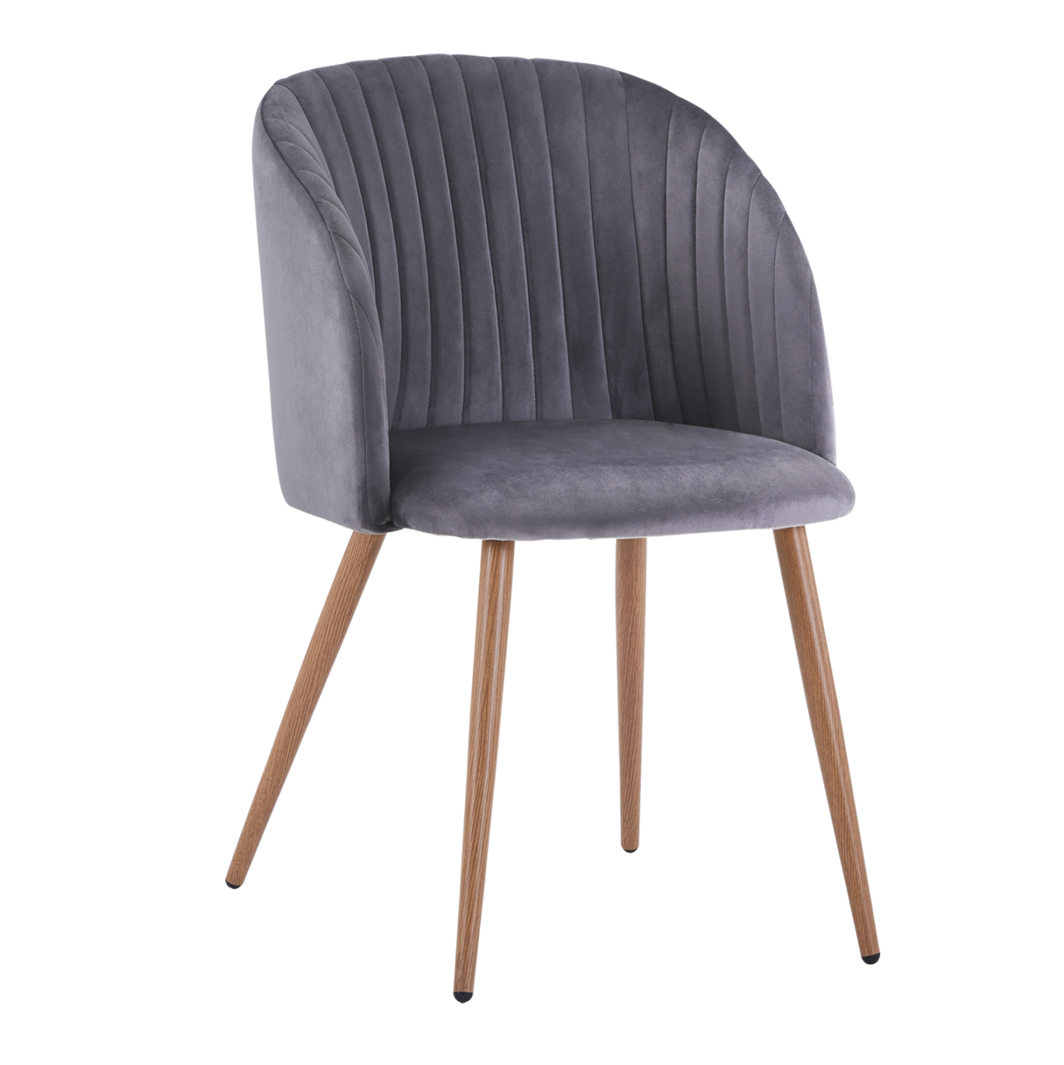 Πολυθρονάκι LEAH με μπράτσα επενδυμένο με βελούδο σε γκρι απόχρωση. Τα πόδια είναι μεταλλικά, βαμμένα έτσι ώστε να αποδίδουν την όψη του ξύλου.