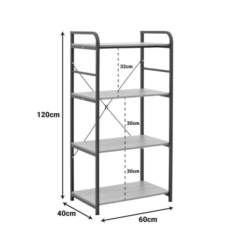 - Διαθέτει τέσσερα ευρύχωρα ράφια, ιδανικά για την αποθήκευση φούρνου μικροκυμάτων, τοστιέρας, συσκευών κουζίνας, βάζων και σκευών.