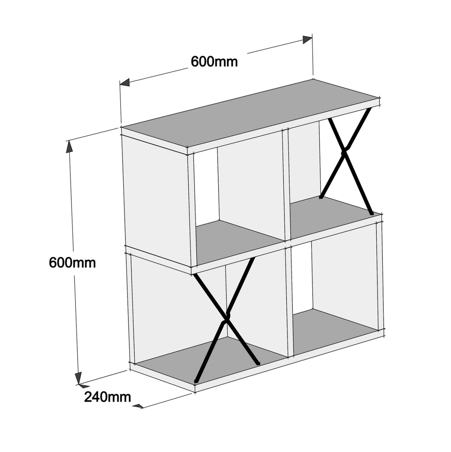 Το ράφι τοίχου μελαμίνης ΗΜ9520.03 σε ΛΕΥΚΟ χρώμα, συνδυάζει το απέριττο design με την πρακτικότητα. Αποτελείται από μια διάταξη 4 ραφιών σε μορφή κύβων, 2 εκ των οποίων έχουν και «πλάτη», με 2 μαύρα μεταλλικά Χ (βέργες) να σπάνε την κυριαρχία του λευκού δημιουργώντας όμορφη διχρωμία.