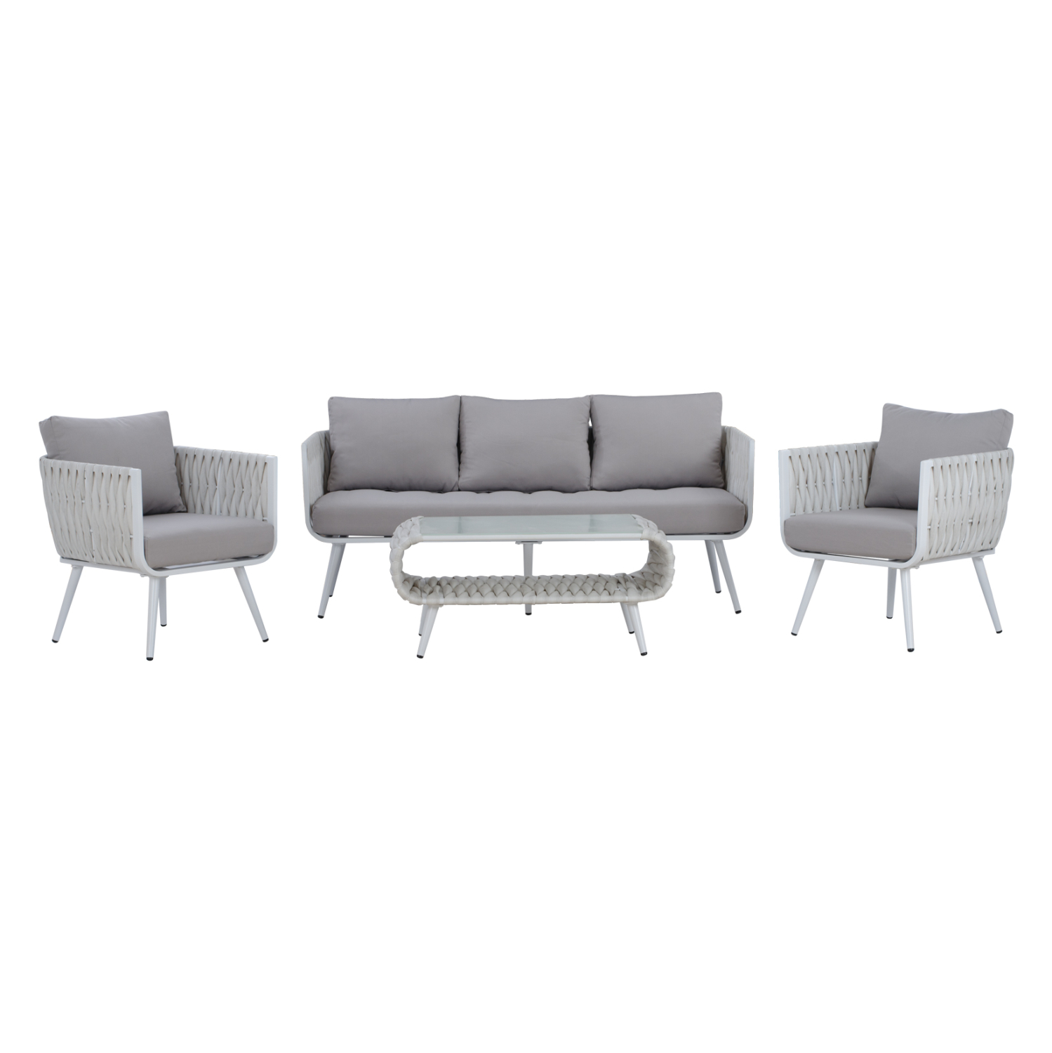 ΣΕΤ ΣΑΛΟΝΙ 4ΤΜΧ VARNAMO HM5282.12 ΑΛΟΥΜΙΝΙΟ ΛΕΥΚΟ-ΣΧΟΙΝΙ STRAP ΓΚΡΙ-ΓΥΑΛΙ