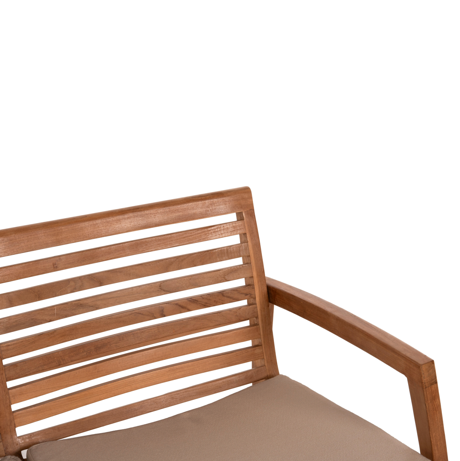 Σας παρουσιάζουμε το όμορφο και νέο σετ εξωτερικού χώρου DOVER σε ΦΥΣΙΚΟ χρώμα, με τραπεζάκι, 2 πολυθρόνες και 1 διθέσιο καναπέ. Ένα σετ που θα το λατρέψετε με την πρώτη ματιά. Όλο το σετ είναι κατασκευασμένο από ξύλο ΤΕΑΚ. Ειδικά, οι πολυθρόνες έχουν φαρδύ και κοντό κάθισμα ενώ η πλάτη τους έχει μια ελαφριά κλίση προς τα πίσω πράγμα που επιτείνει την άνεση που προσφέρουν, σε συνδυασμό με τα αναπαυτικά μαξιλάρια στο κάθισμα. Τα μαξιλάρια σε όλο το σετ είναι επενδυμένα με ποιοτικό ύφασμα σε ΜΟΚΑ χρώμα και διαθέτουν γέμισμα με μέτριας σκληρότητας αφρώδη υλικά για την μεγαλύτερη δυνατή άνεση. Τι άλλο να ζητήσει κανείς για να αναβαθμίσει τον κήπο, το μπαλκόνι ή την αυλή του;