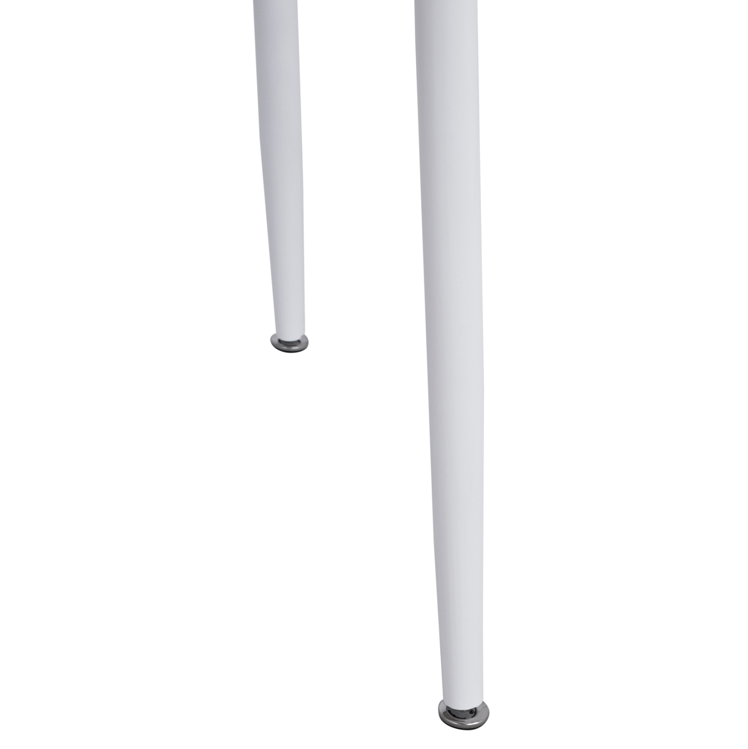 Ένα ορθογώνιο τραπέζι με ΛΕΥΚΑ μεταλλικά πόδια με ρεγουλατόρους, και επιφάνεια από MDF σε SONAMA χρώμα, και 4 καρέκλες με κάθισμα και πλάτη επενδυμένα με ΜΠΕΖ ύφασμα, και πόδια από ξύλο οξιάς σε ΦΥΣΙΚΟ χρώμα.