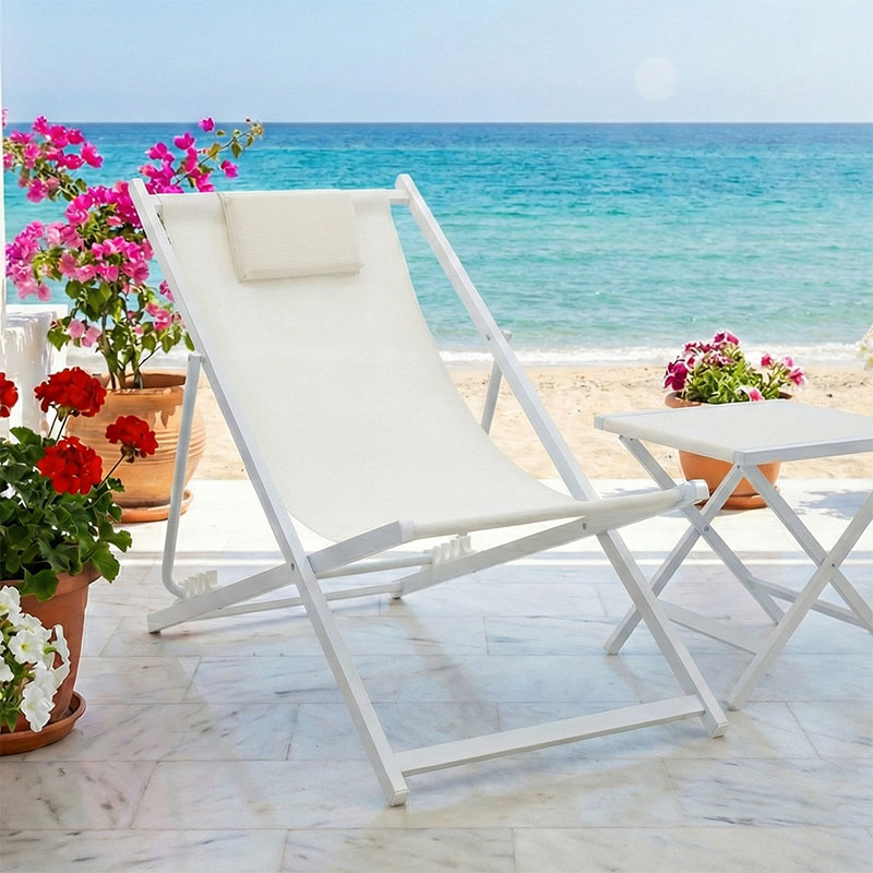 Σεζλόνγκ επαγγελματική Corte pakoworld αλουμίνιο λευκό-ύφασμα textilene μπεζ