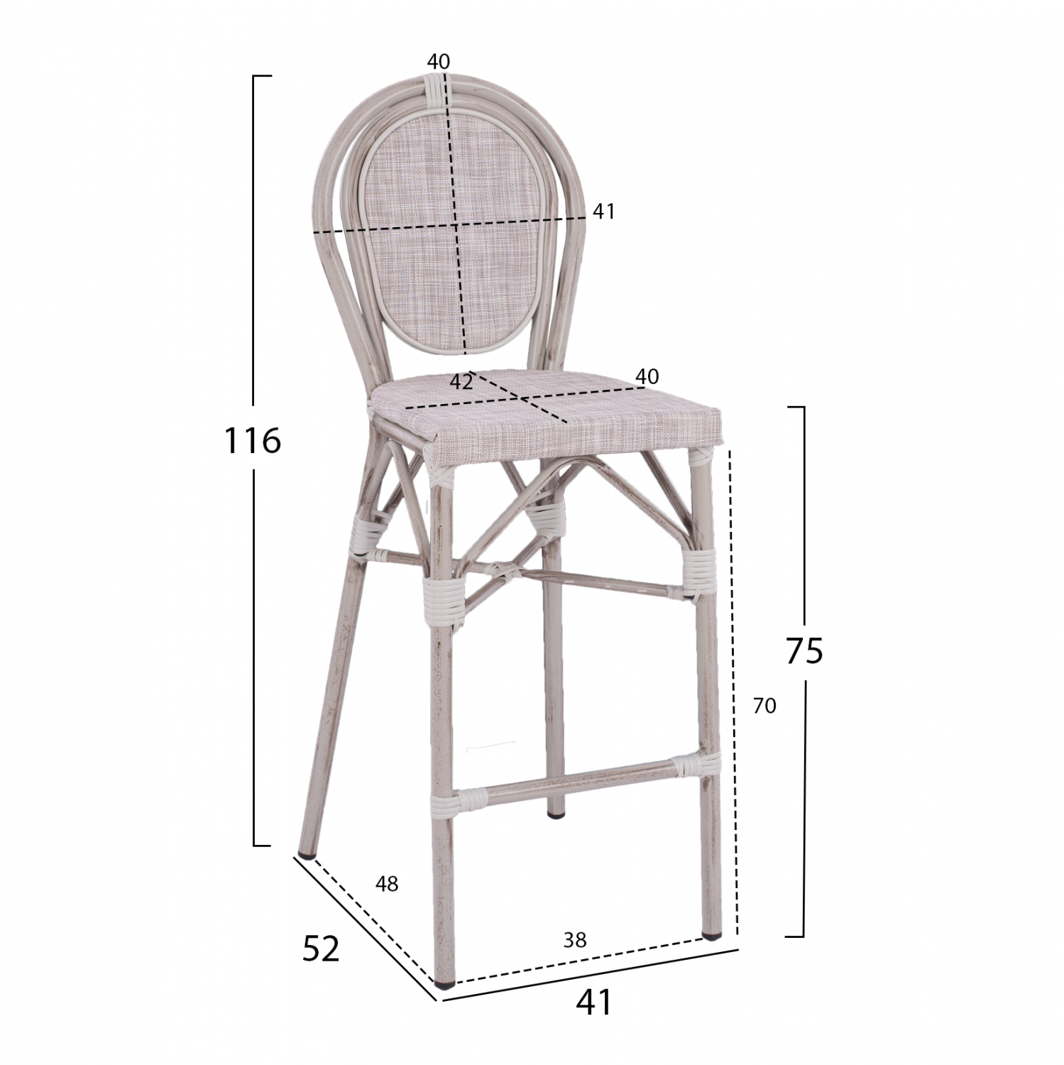 Διαστάσεις ύψους καθίσματος: 75 εκ.