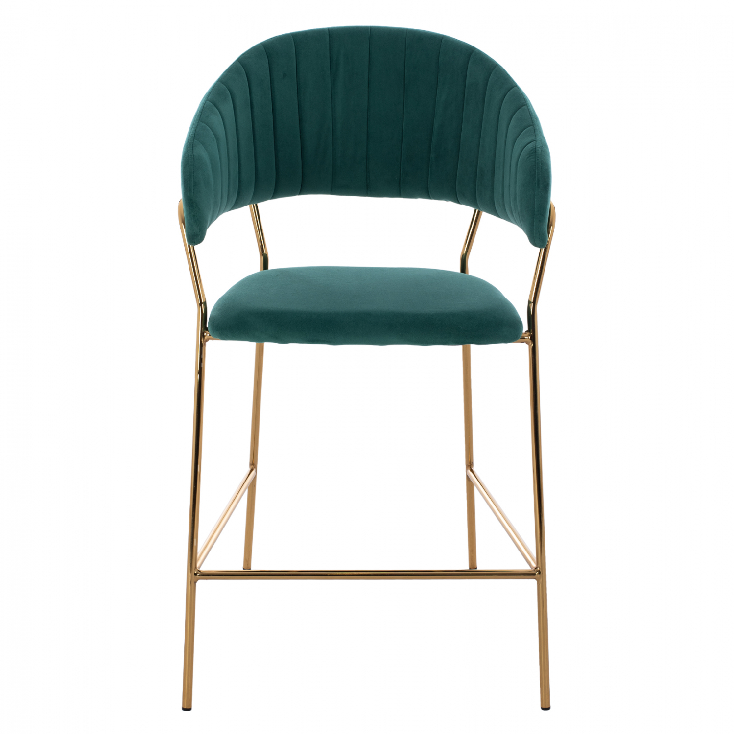 Σκαμπό μεσαίου ύψους Theodore, από βελούδινο ύφασμα σε κυπαρισσί με επίχρυσο σκελετό 60x55x100 εκ.