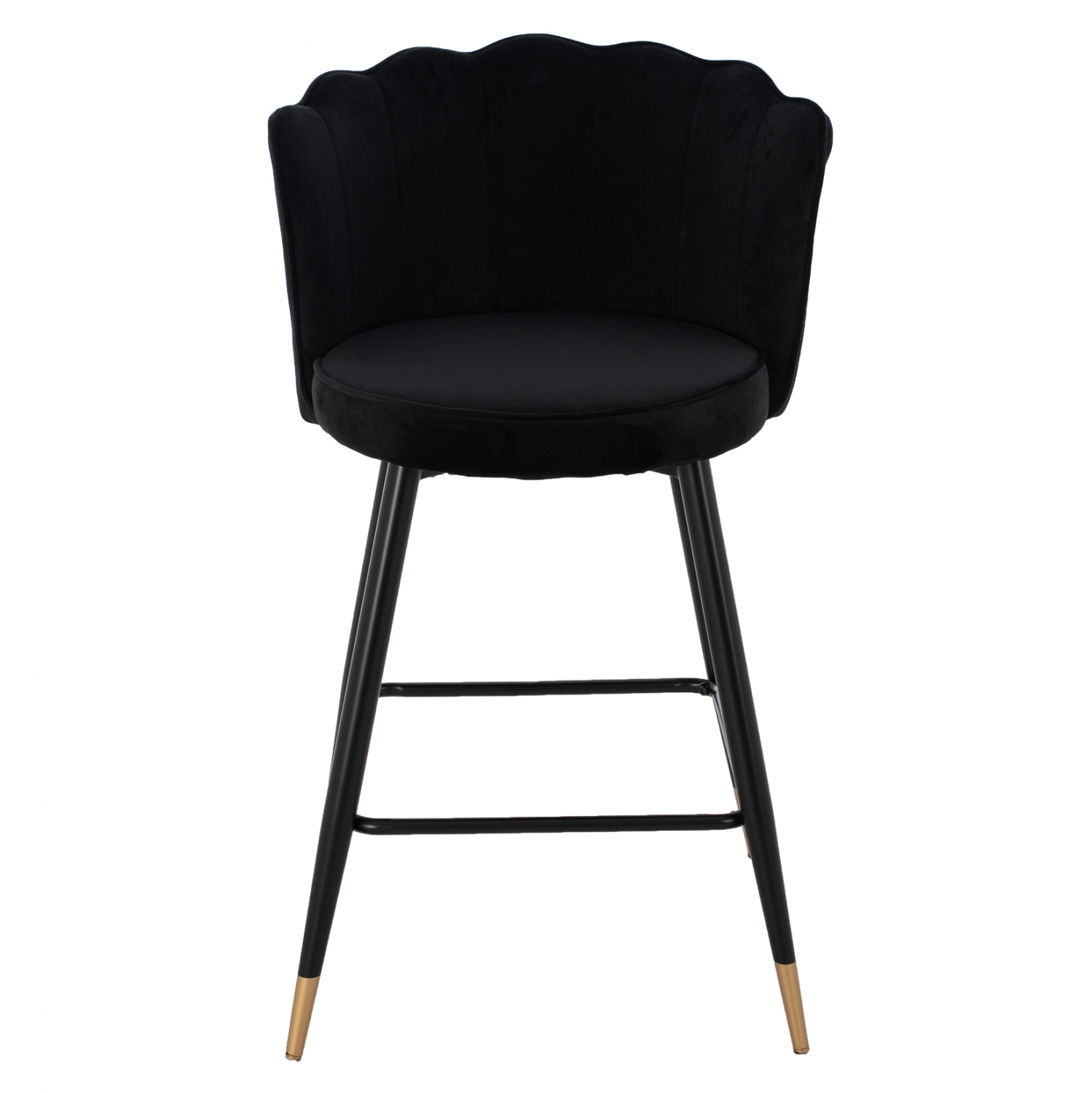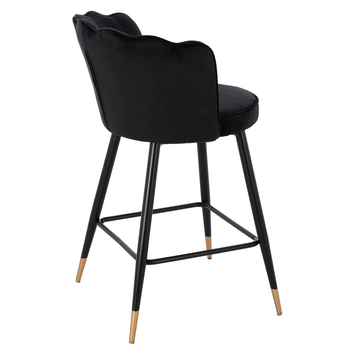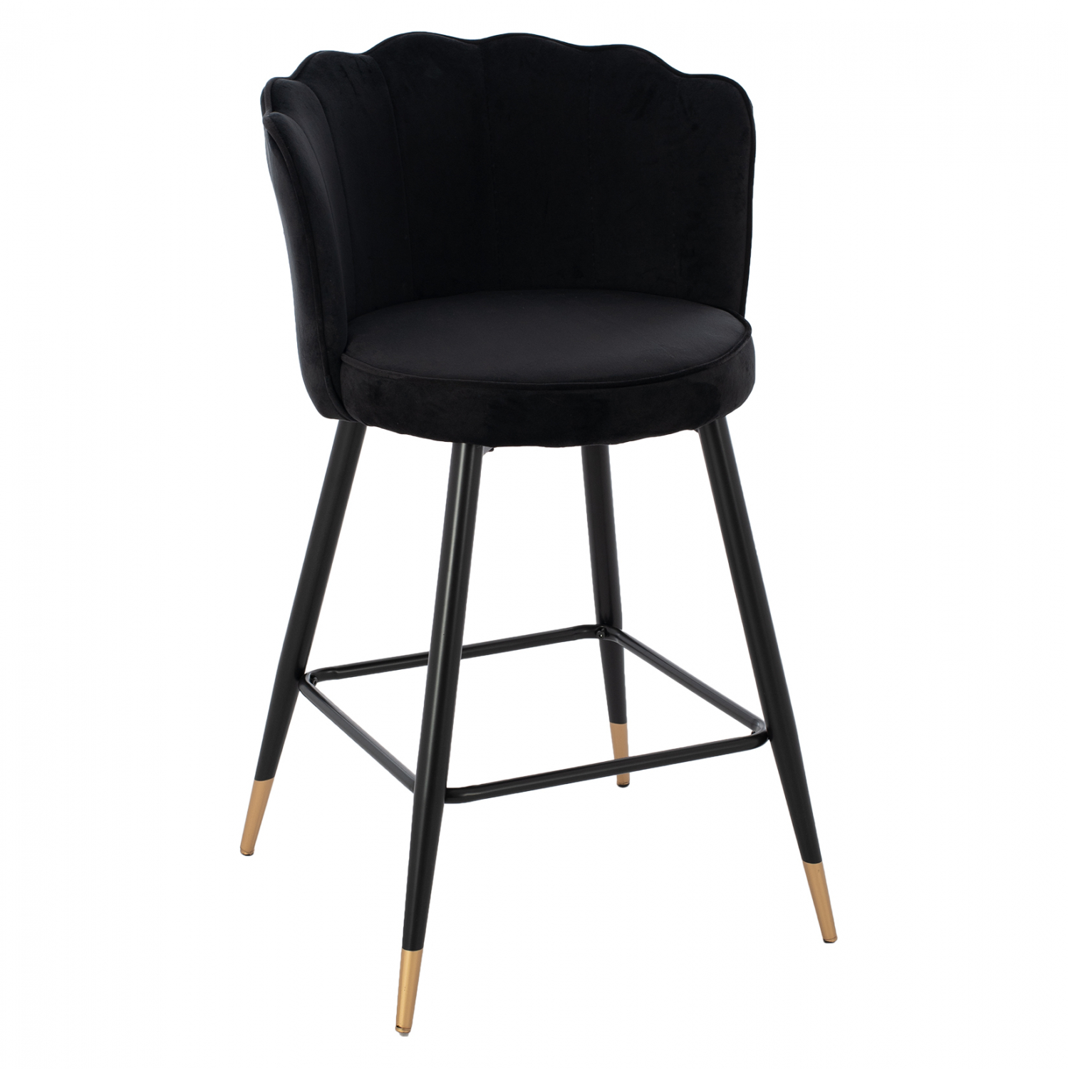 Σκαμπό μεσαίου ύψους από βελούδινο ύφασμα σε μαύρο και μαύρο σκελετό με χρυσές λεπτομέρειες 50x50x90 εκ.