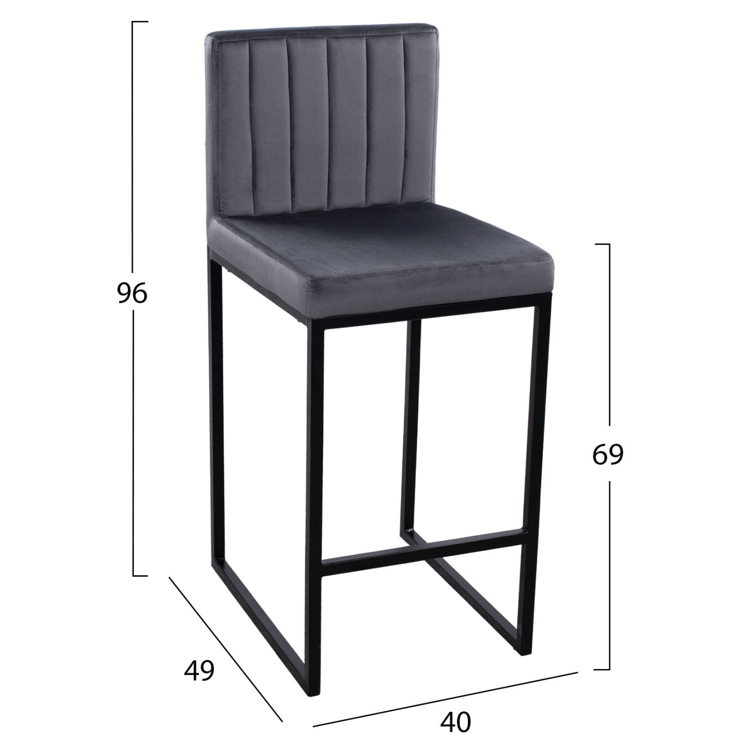 ΣΚΑΜΠΟ ΜΕΣΑΙΟΥ ΥΨΟΥΣ PIPER ΒΕΛΟΥΔΟ ΓΚΡΙ & ΜΑΥΡΟ ΜΕΤΑΛΛΙΚΟ ΣΚΕΛΕΤΟ HM8525.01 40x49x96Υ εκ.