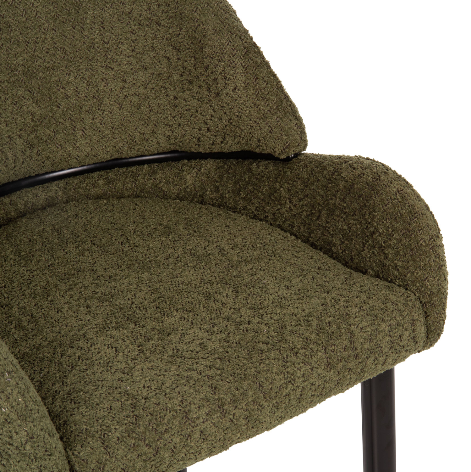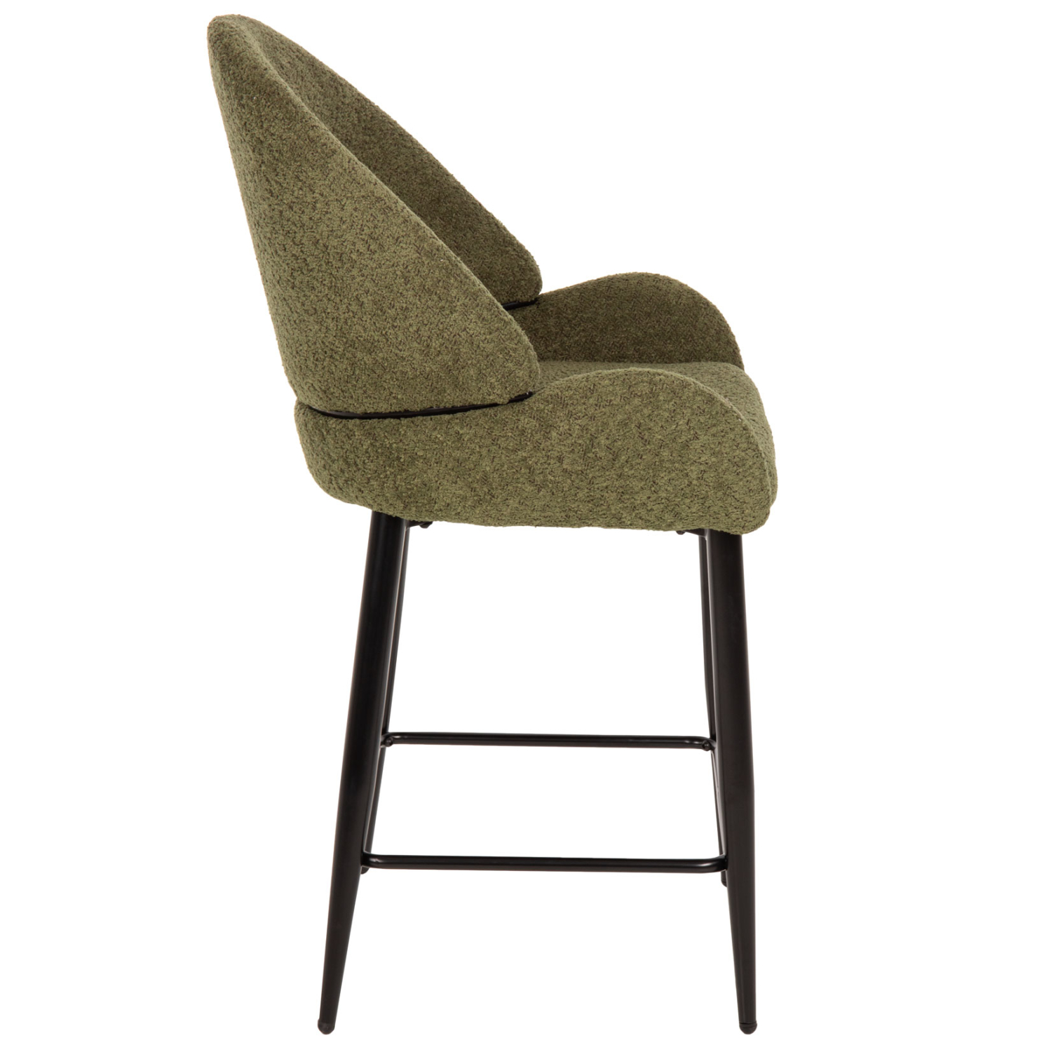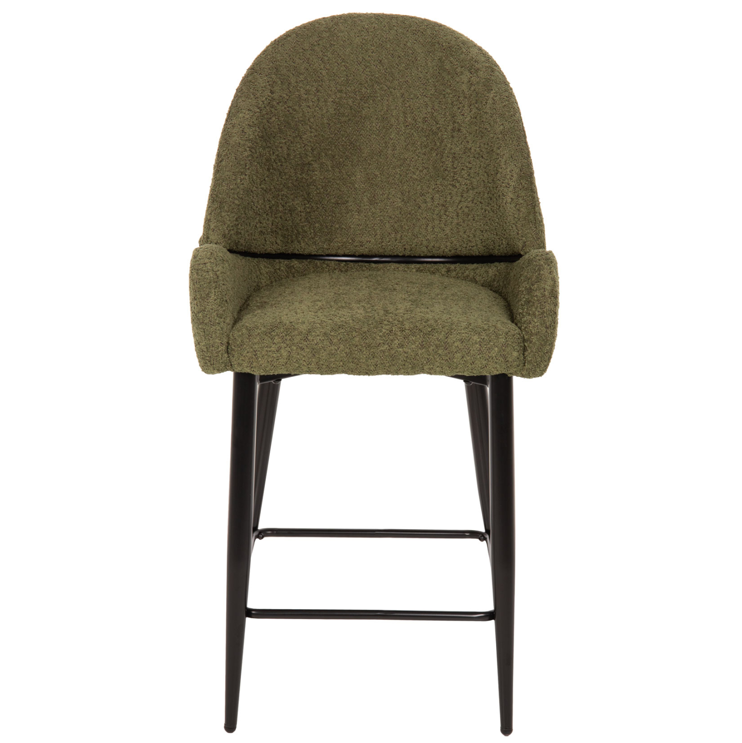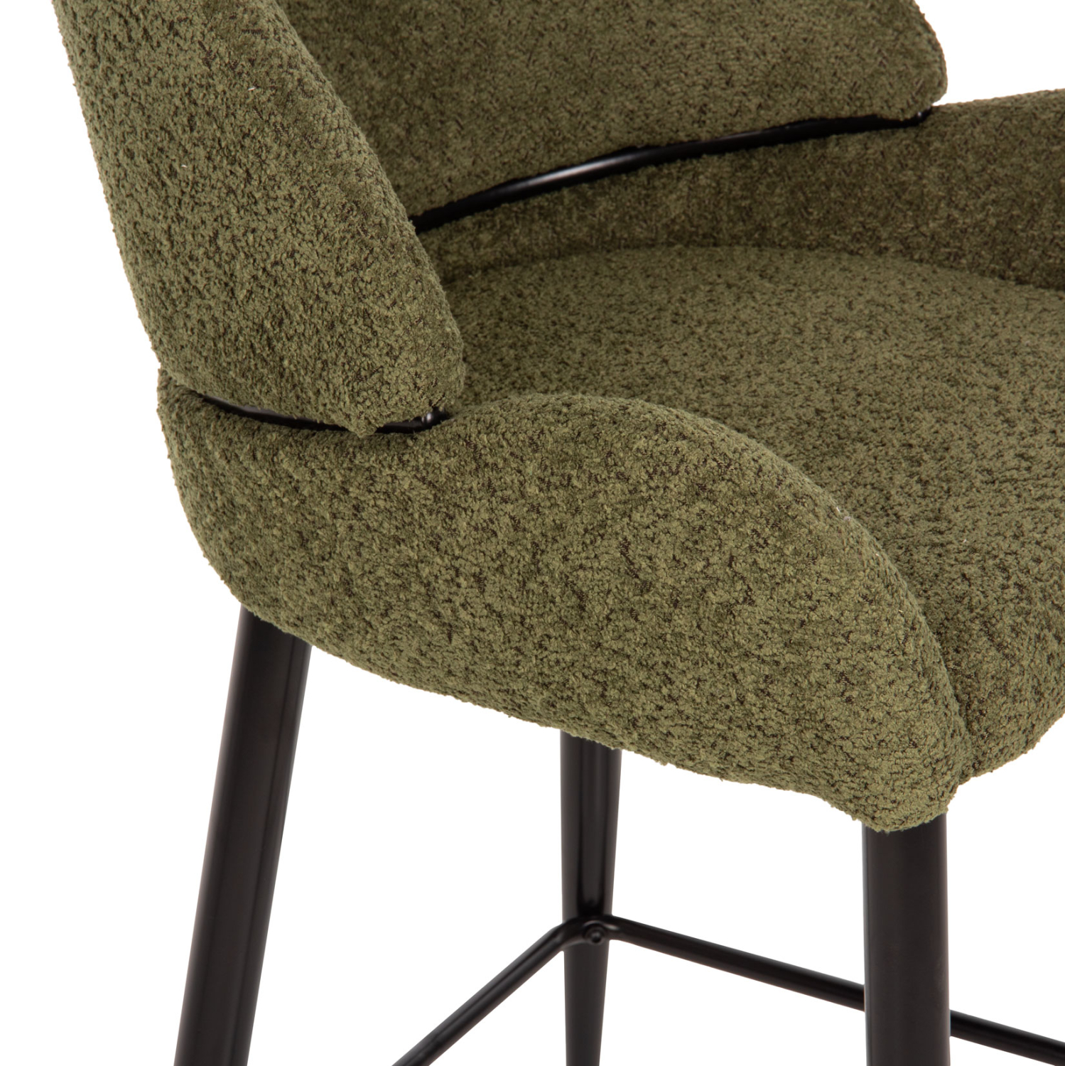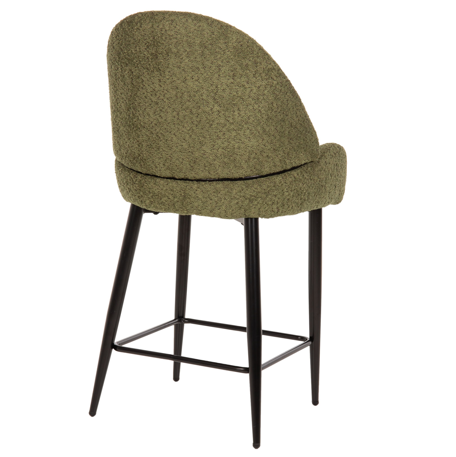 HΜ8586.03- -Επαγγελματικό σκαμπό bar σε ΠΡΑΣΙΝΟ χρώμα με ΜΑΥΡΑ μεταλλικά πόδια. Τα πόδια ενώνονται μεταξύ τους περίπου στη μέση τους με μια μεταλλική ράγα. Το σκαμπό είναι λιτό, ποιοτικό και κομψό στην όψη, και σίγουρα τραβάει τα βλέμματα με το ύφασμα μπουκλέ που είναι επενδυμένο. Είναι ψηλό με πλάτη η οποία αγκαλιάζει το σώμα ενώ και το κάθισμα έχει υπερυψωμένα πλαϊνά, πράγμα που επιτείνει τον ιδιαίτερο χαρακτήρα αυτού του σκαμπό.