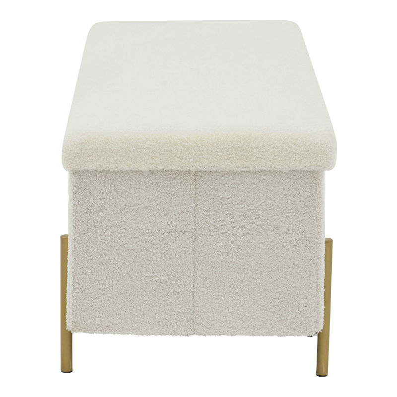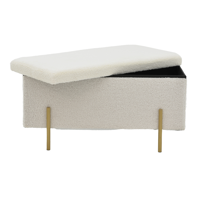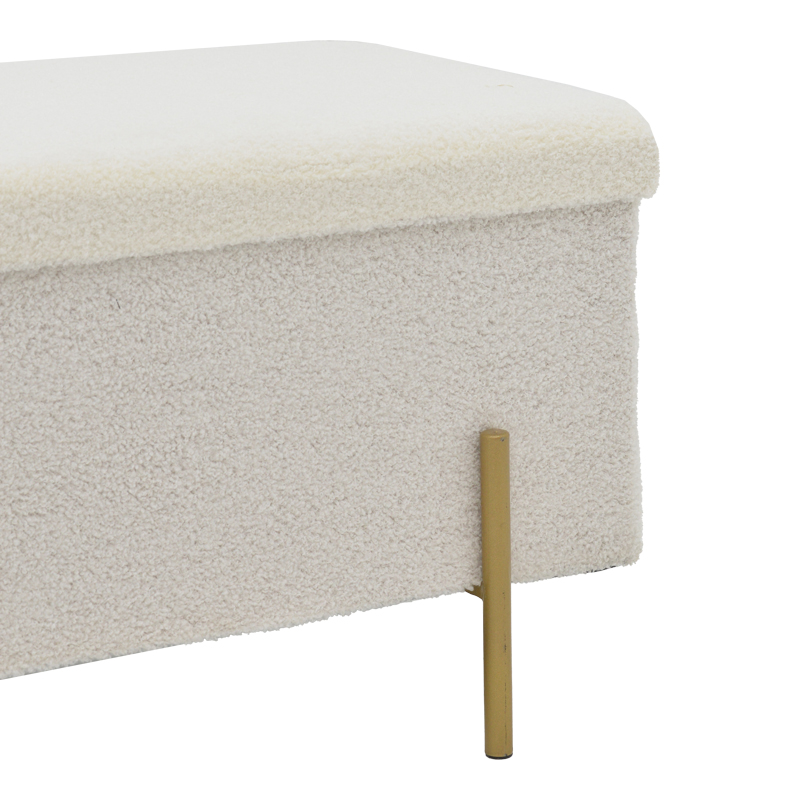Σκαμπό-μπαούλο Ziwel pakoworld μπουκλέ λευκό-χρυσό 80x40x40εκ