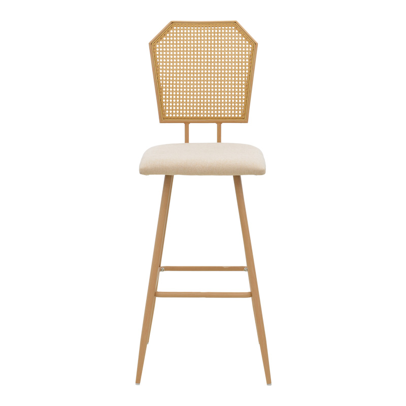 Σκαμπό μπαρ Camilla I pakoworld φυσικό pe rattan με μπεζ ύφασμα και μέταλλο σε φυσική απόχρωση 47.5x58x117εκ