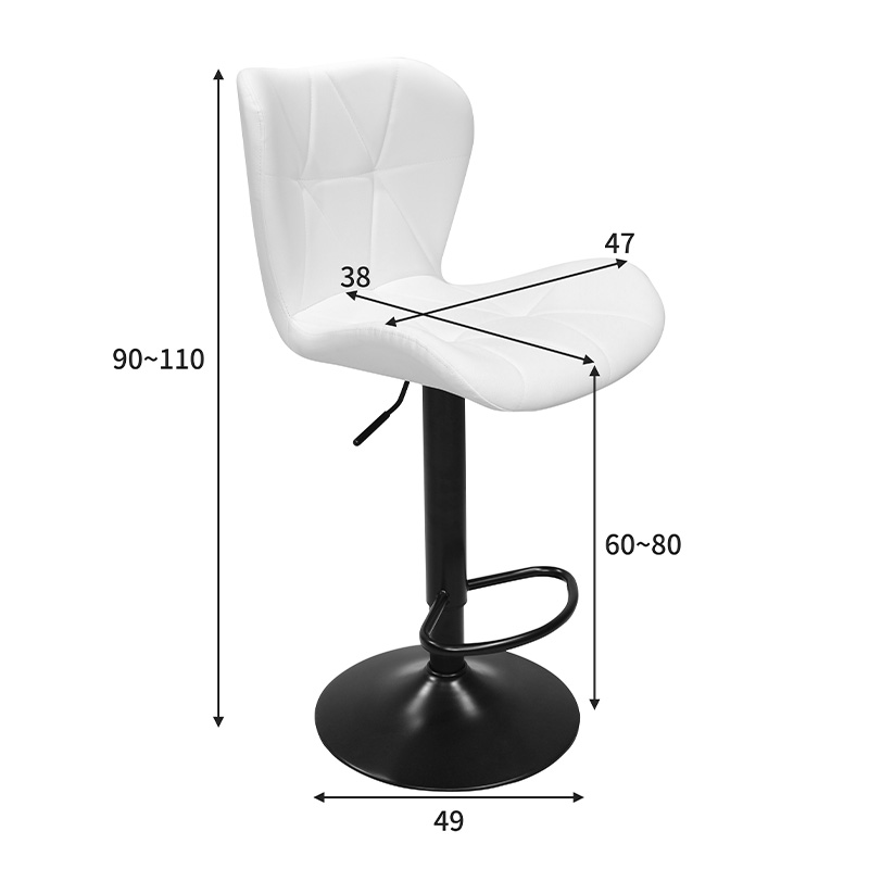 Σκαμπό μπαρ Coozy pakoworld πτυσσόμενο μεταλλικό μαύρο ματ με pu σε λευκή απόχρωση 46x47x90-112εκ