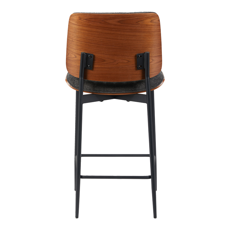 Σκαμπό-μπαρ Kathy pakoworld ξύλο σε καρυδί με γκρι ύφασμα 48.5×52.5×96εκ