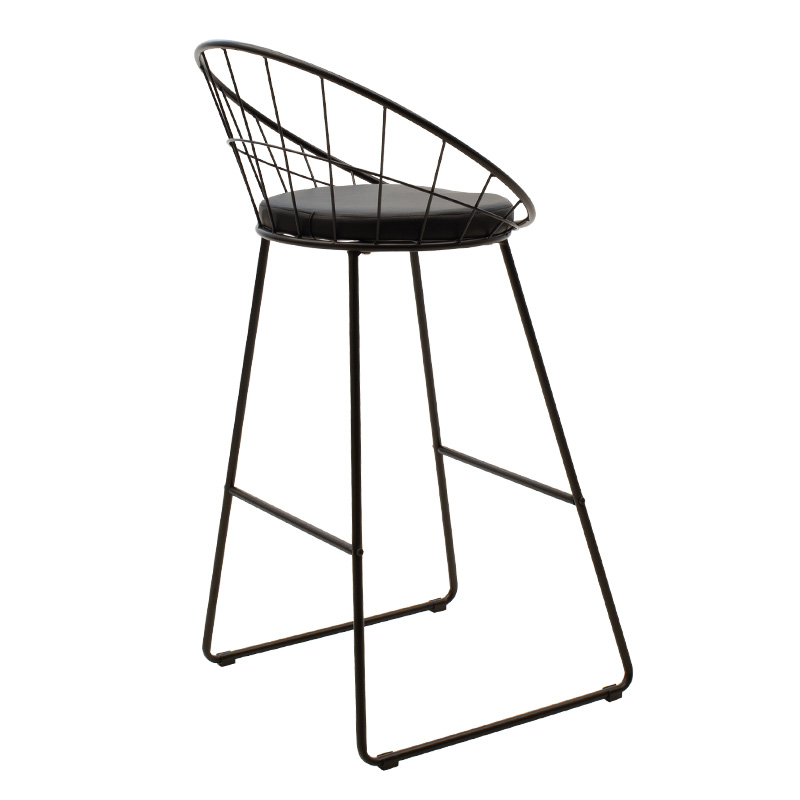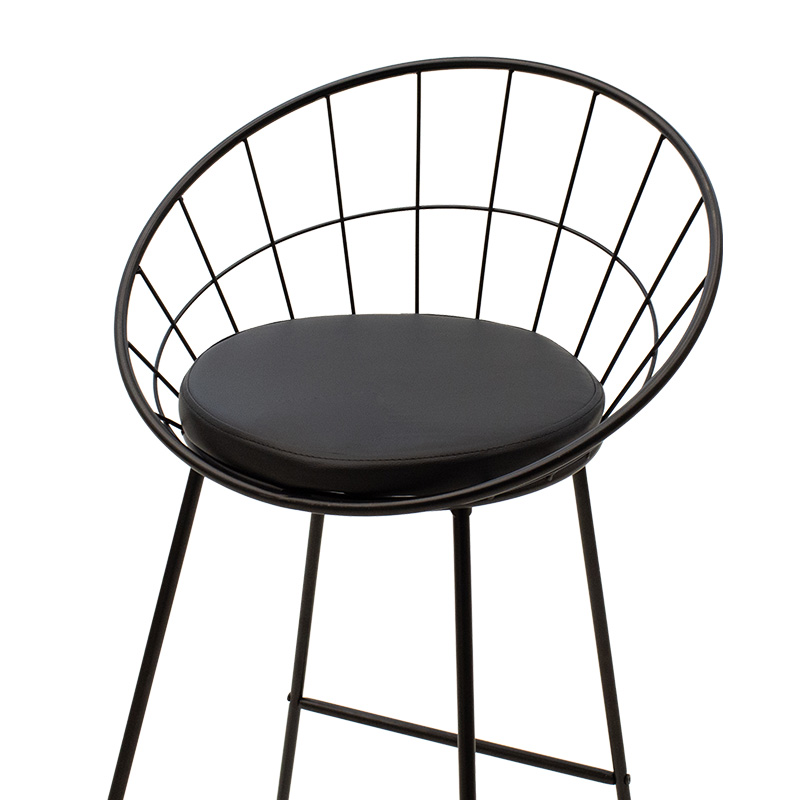 Σκαμπό μπαρ Seth pakoworld μεταλλικό μαύρο με μαξιλάρι PVC μαύρο
