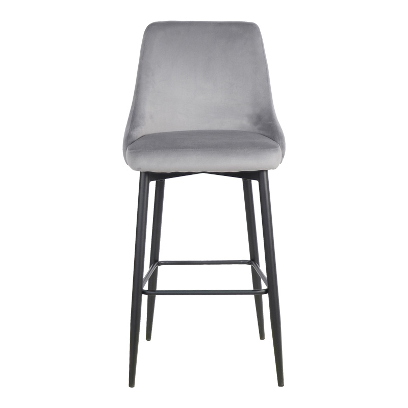 Σκαμπό μπαρ Zedna pakoworld γκρι βελούδο με μαύρα μεταλλικά πόδια 52x57x111εκ