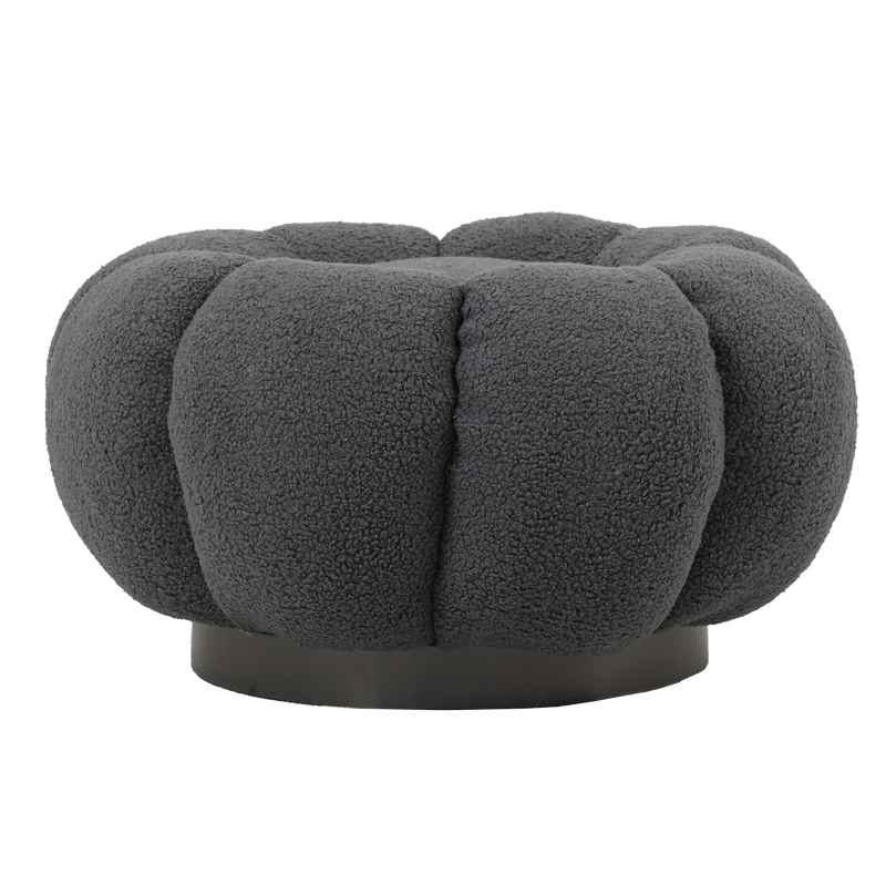 Σκαμπό Nester pakoworld μπουκλέ ύφασμα σε γκρι απόχρωση Φ60×31εκ