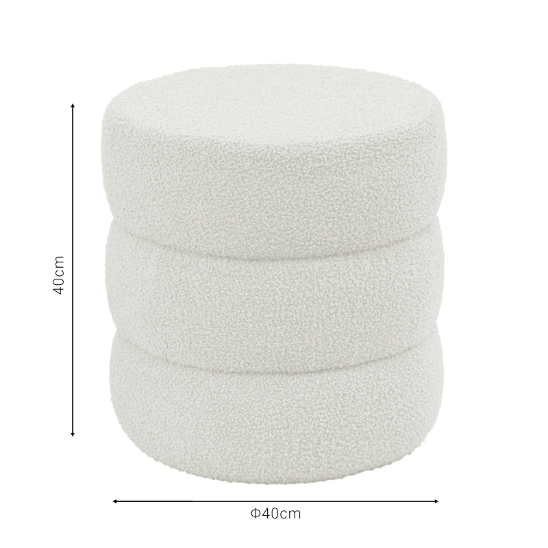 Σκαμπό-πουφ Kioto pakoworld μπουκλέ λευκό Φ40×40εκ
