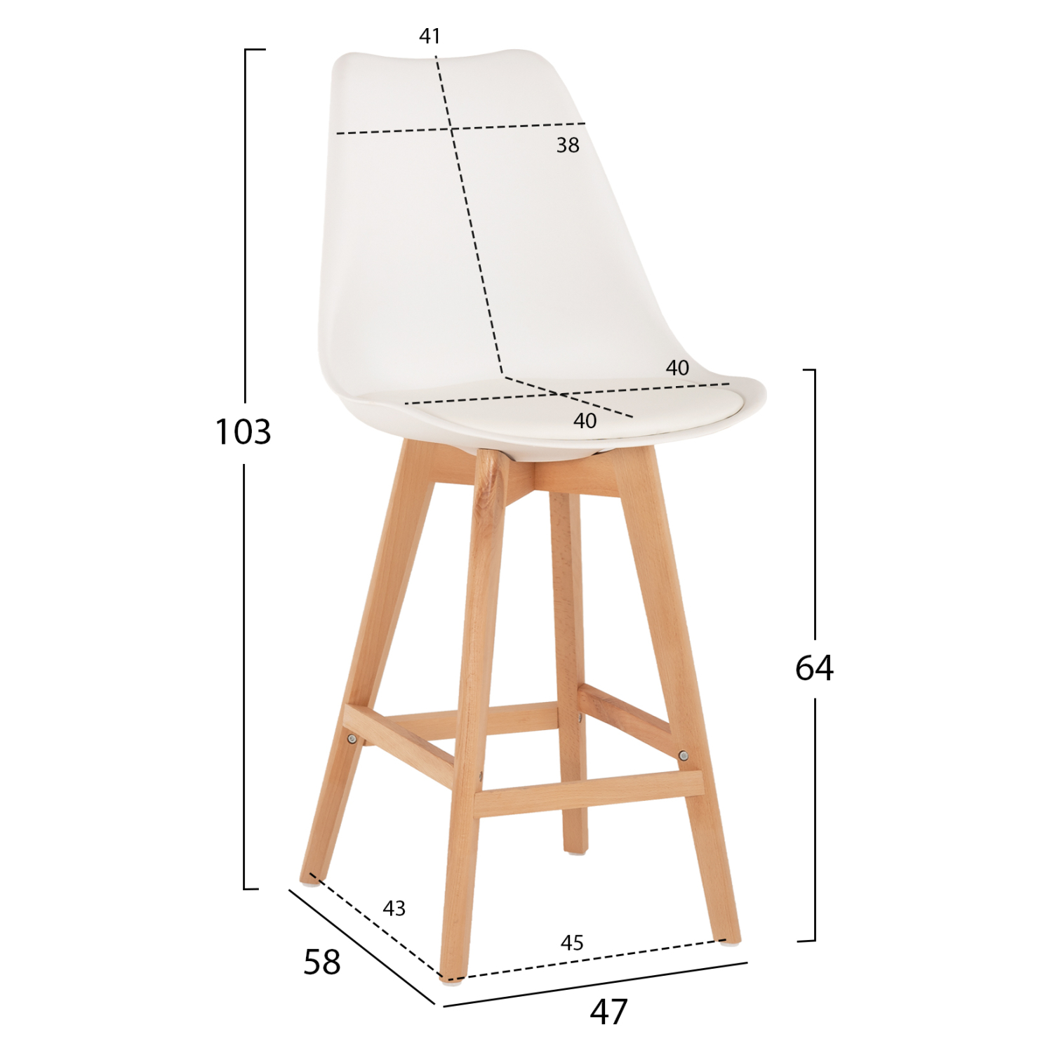 Το σκαμπό-μπαρ VEGAS είναι ένα όμορφο σκαμπό για μπαρ, που έχει όλα όσα θα θέλατε από ένα τέτοιο έπιπλο. Είναι μεσαίου ύψους, ποιοτικό και κομψό στην όψη, και σίγουρα τραβάει τα βλέμματα. Το κάθισμα διαθέτει μαξιλαράκι, ενώ μαζί με την πλάτη είναι από μονοκόμματο πολυπροπυλένιο σε ΛΕΥΚΟ χρώμα. Η πλάτη είναι ψηλή και αναπαυτική ενώ όλη η κατασκευή πολυπροπυλενίου είναι μονταρισμένη επάνω σε έναν ξύλινο σκελετό σε ΦΥΣΙΚΟ χρώμα ξύλου. Όλη η κατασκευή είναι άνετη, και θα γίνει το αγαπημένο κάθισμα σε όποιο χώρο κι αν τοποθετηθεί χάρη στην πρακτικότητά του.