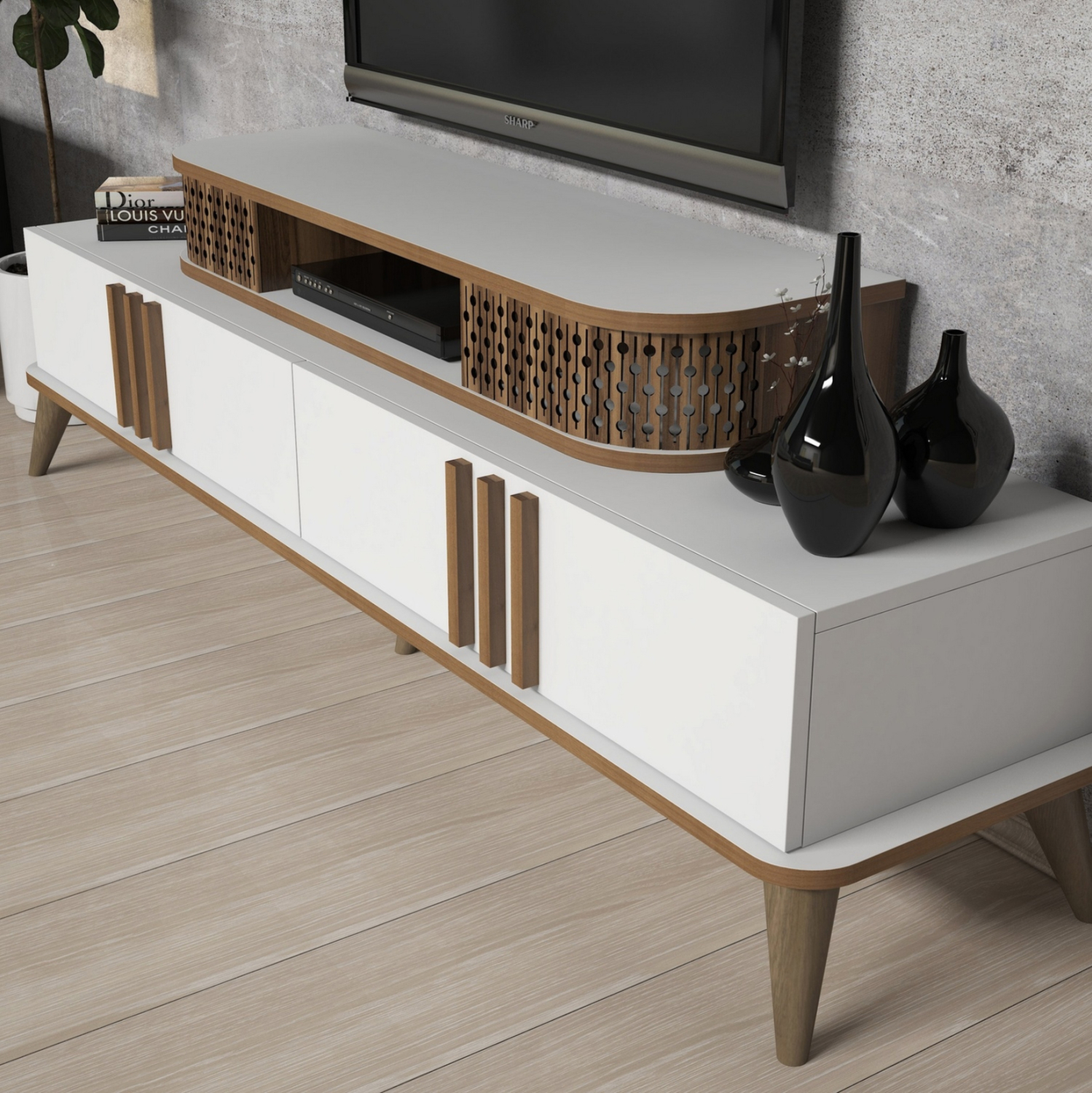 Η σύνθεση ΗΜ11848.03 θα αλλάξει την όψη στο σαλόνι σας και θα σας προσφέρει την αναβάθμιση που θέλετε. Αποτελείται από έναν συνδυασμό επίπλων για την τηλεόρασή σας με μονάδα δαπέδου και επιτοίχιο ράφι και ένα τραπεζάκι σαλονιού. Όλη η σύνθεση είναι της ίδιας σειράς και ο συνδυασμός χρωμάτων είναι το ΛΕΥΚΟ με ΚΑΡΥΔΙ.