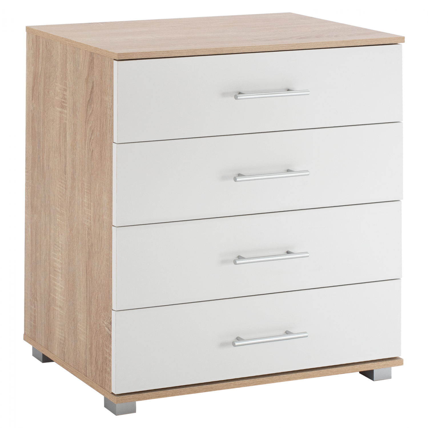 Μοντέρνα συρταριέρα κατασκευασμένη από μελαμίνη, σε sonama απόχρωση με λευκά συρτάρια.