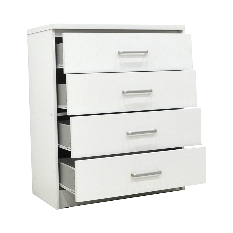 • Φέρει τέσσερα μεγάλα συρόμενα συρτάρια σε σε λευκό.  Υψος συρταριού εξωτ: 20εκ -εσωτ 15εκ