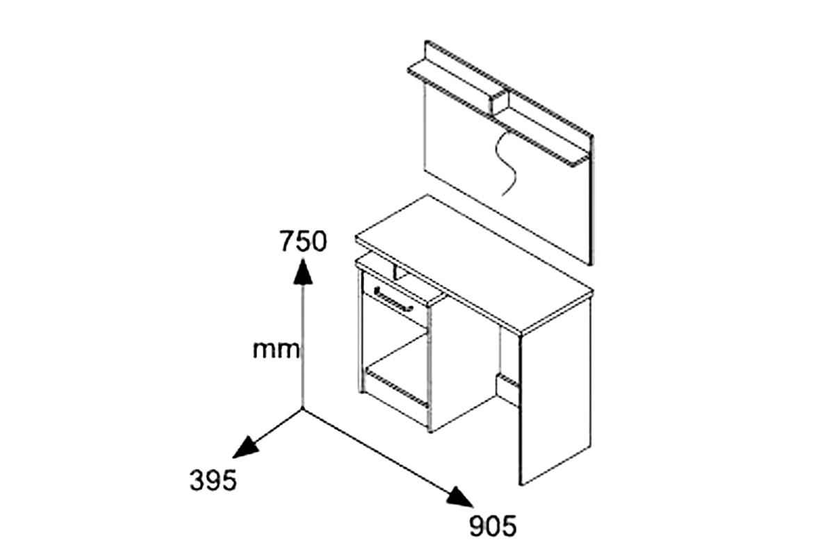 - Η σύνθεση περιλαμβάνει την κονσόλα με ένα μεγάλο ντουλάπι & ένα συρτάρι, καθρέπτη με βοηθητικά ψηλά ραφάια και εξτρά ένα σκαμπό.