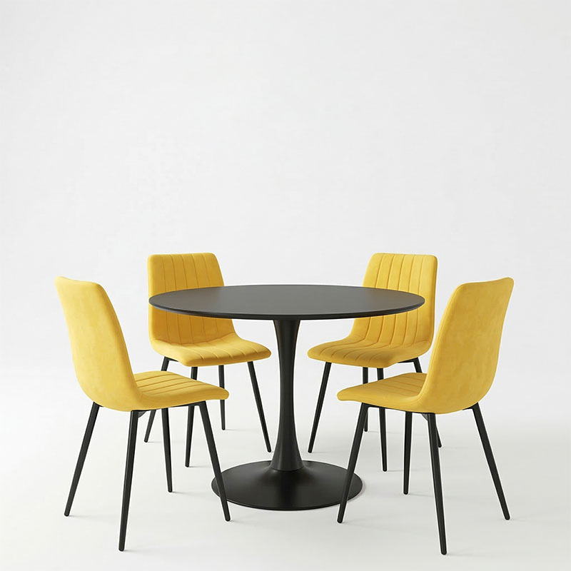 Τραπεζαρία Balou-Noor pakoworld σετ 5τεμ MDF μαύρο-κίτρινο Φ120×73εκ