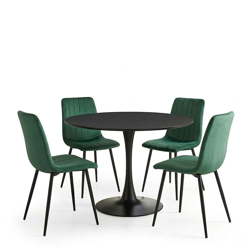 Τραπεζαρία Balou-Noor pakoworld σετ 5τεμ MDF μαύρο-κυπαρισσι Φ120×73εκ