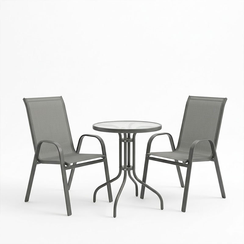 Tραπεζαρία Calan-Watson pakoworld σετ 3τεμ μέταλλο γκρι και γυαλί tempered Φ60×70εκ