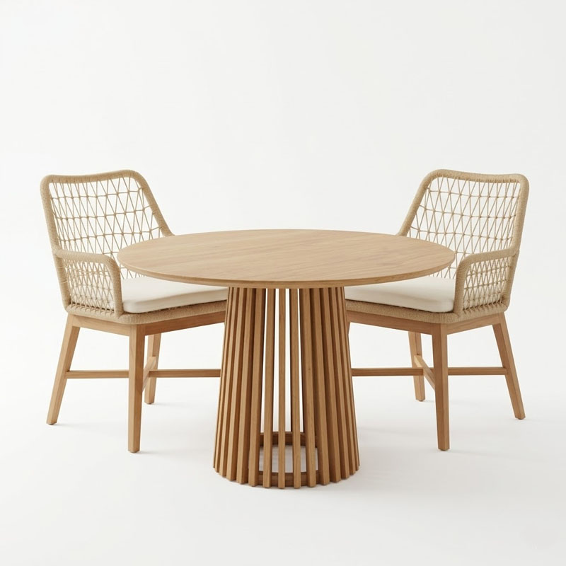 Τραπεζαρία Elaiza-Kenda I pakoworld σετ 3τεμ σε φυσική-μπεζ απόχρωση Φ80×75εκ