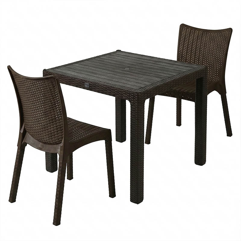 Τραπεζαρία κήπου Explore-Confident pakoworld σετ 3τεμ PP καφέ 90x90x73,5εκ.