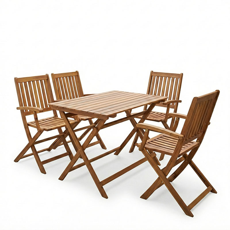 Τραπεζαρία Joter-Jaybo pakoworld σετ 5τεμ πτυσσόμενο φυσικό μασίφ ξύλο ακακίας 100x65x72εκ