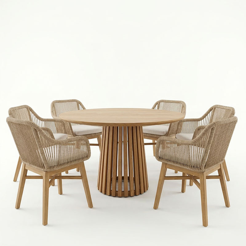 Τραπεζαρία Kalie-Kenda Ι pakoworld σετ 7τεμ σε φυσική-μπεζ απόχρωση Φ80×75εκ
