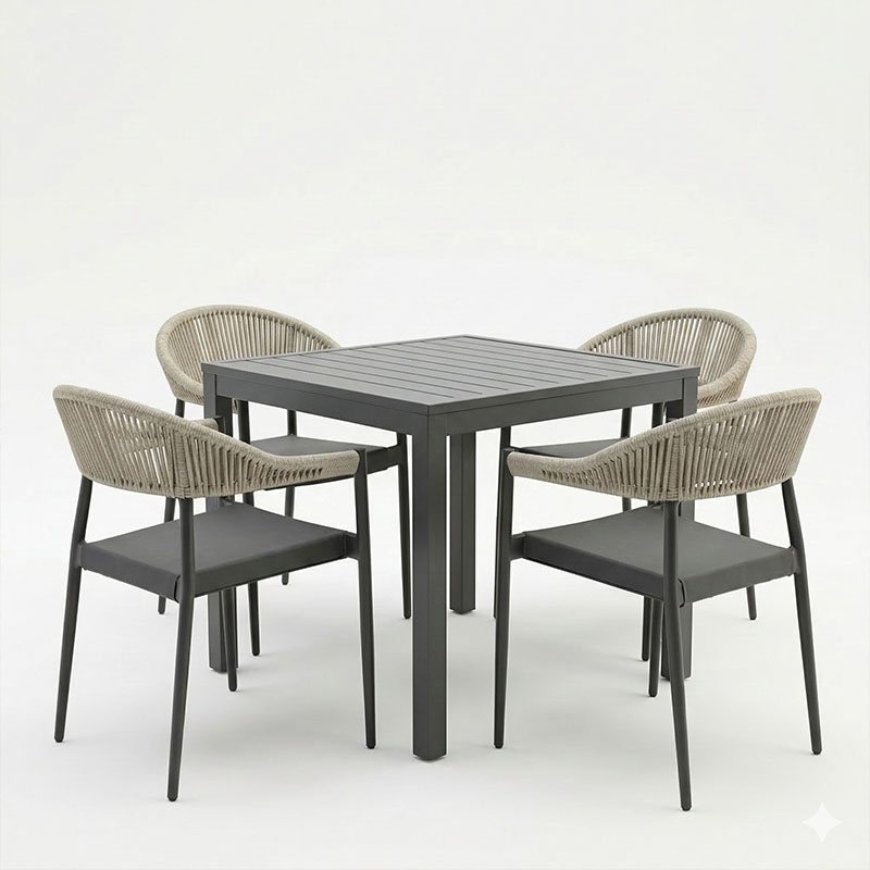 Τραπεζαρία Kliton- Elation σετ 5τεμ pakoworld αλουμίνιο σε ανθρακί απόχρωση 80x80x74εκ