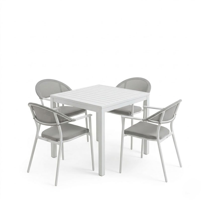 Τραπεζαρία Kliton – Pino σετ 5τεμ pakoworld αλουμίνιο σε λευκή απόχρωση 80x80x74εκ