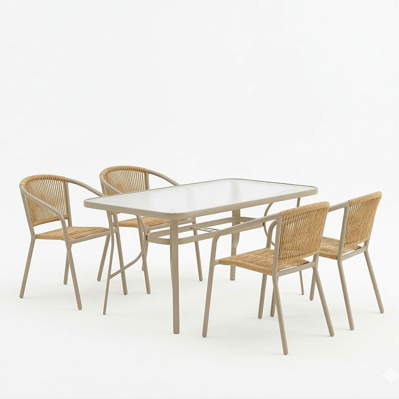 Τραπεζαρία Lindaria-Ensure pakoworld 5τεμ μέταλλο-γυαλί σε σαμπανιζέ απόχρωση 140x80x70εκ