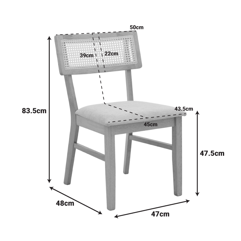 - Σκελετός κατασκευασμένος από ξύλο rubberwood σε φυσικό χρώμα. Το rubberwood είναι πολύ ανθεκτικό και βασικό υλικό στην κατασκευή επίπλων και με μεγάλη αντοχή στον χρόνο.