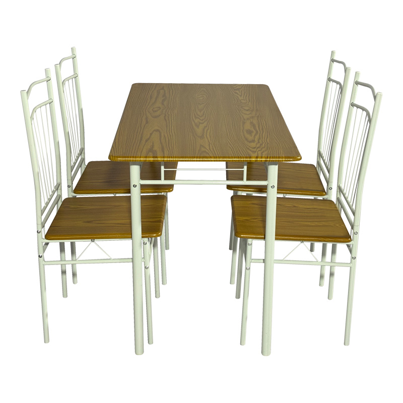 Τραπεζαρία Reforia pakoworld σετ 5τμχ mdf σε φυσική απόχρωση με λευκά μεταλλικά πόδια 110x60x74εκ