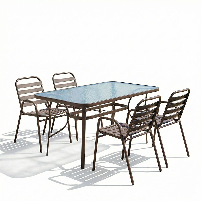 Τραπεζαρία Sussie-Ensure pakoworld 5τεμ μέταλλο-γυαλί σε καφέ απόχρωση 120x70x70εκ