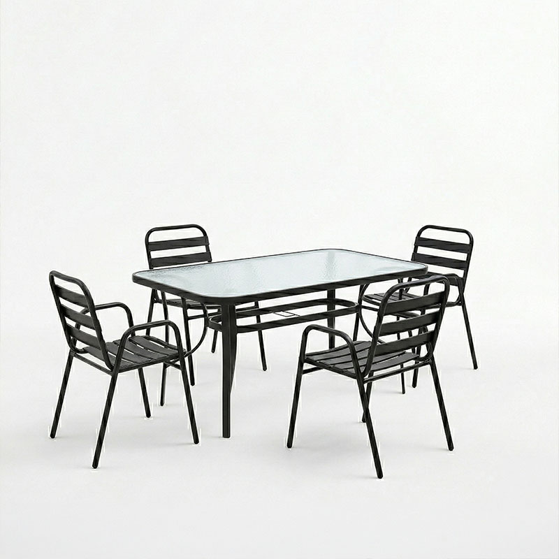 Τραπεζαρία Sussie-Ensure pakoworld 5τεμ μέταλλο-γυαλί σε μαύρη απόχρωση 140x80x70εκ