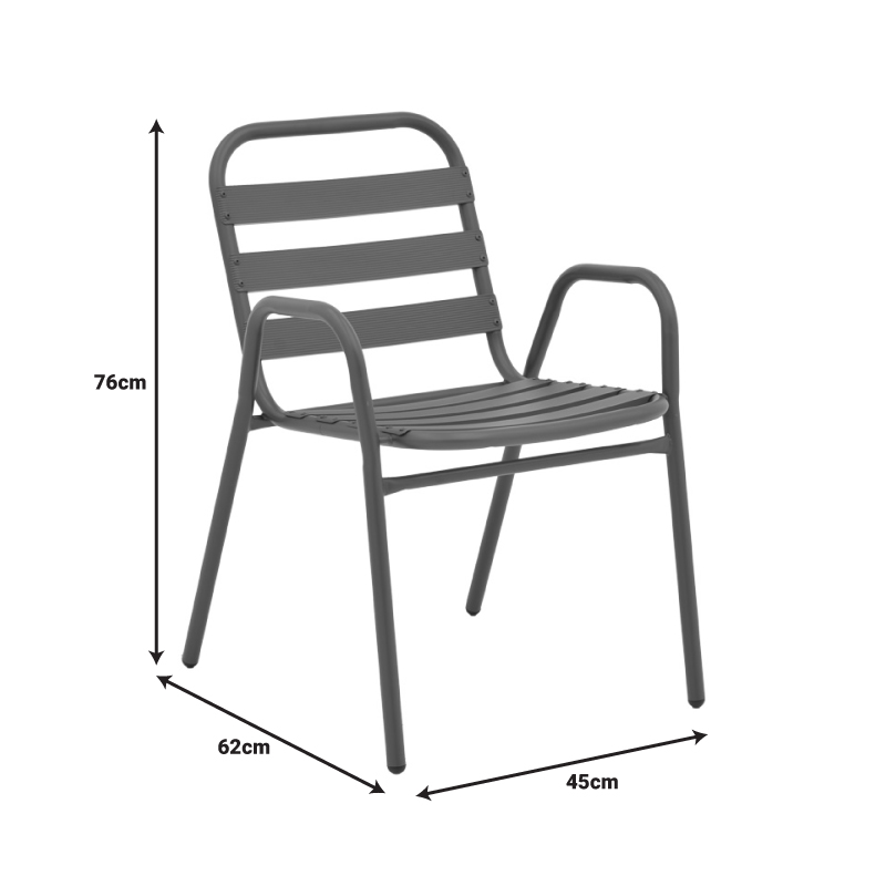 • Σταθερός σκελετός από μέταλλο εξαιρετικής ποιότητας με αντοχή σε φθορά και χρόνο, ενώ τα κομμάτια έδρας και πλάτης είναι κατασκευασμένα από φέτες αλουμινίου. Το μέταλλο παρέχει ανθεκτικότητα και σταθερότητα, ενώ οι φέτες αλουμινίου προσθέτουν ελαφρότητα και μια μοντέρνα αίσθηση στον σχεδιασμό. Η πολυθρόνα αυτή είναι ιδανική για χρήση σε εξωτερικούς χώρους, καθώς η ανθεκτικότητα στις καιρικές συνθήκες του αλουμινίου την καθιστά ανθεκτική σε έκθεση στον ήλιο και την υγρασία.