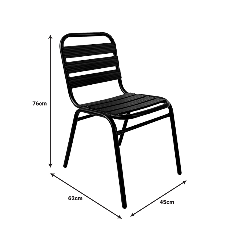 • Σταθερός σκελετός από μέταλλο εξαιρετικής ποιότητας με αντοχή σε φθορά και χρόνο, ενώ τα κομμάτια έδρας και πλάτης είναι κατασκευασμένα από φέτες αλουμινίου. Το μέταλλο παρέχει ανθεκτικότητα και σταθερότητα, ενώ οι φέτες αλουμινίου προσθέτουν ελαφρότητα και μια μοντέρνα αίσθηση στον σχεδιασμό. Η καρέκλα αυτή είναι ιδανική για χρήση σε εξωτερικούς χώρους, καθώς η ανθεκτικότητα στις καιρικές συνθήκες του αλουμινίου την καθιστά ανθεκτική σε έκθεση στον ήλιο και την υγρασία.