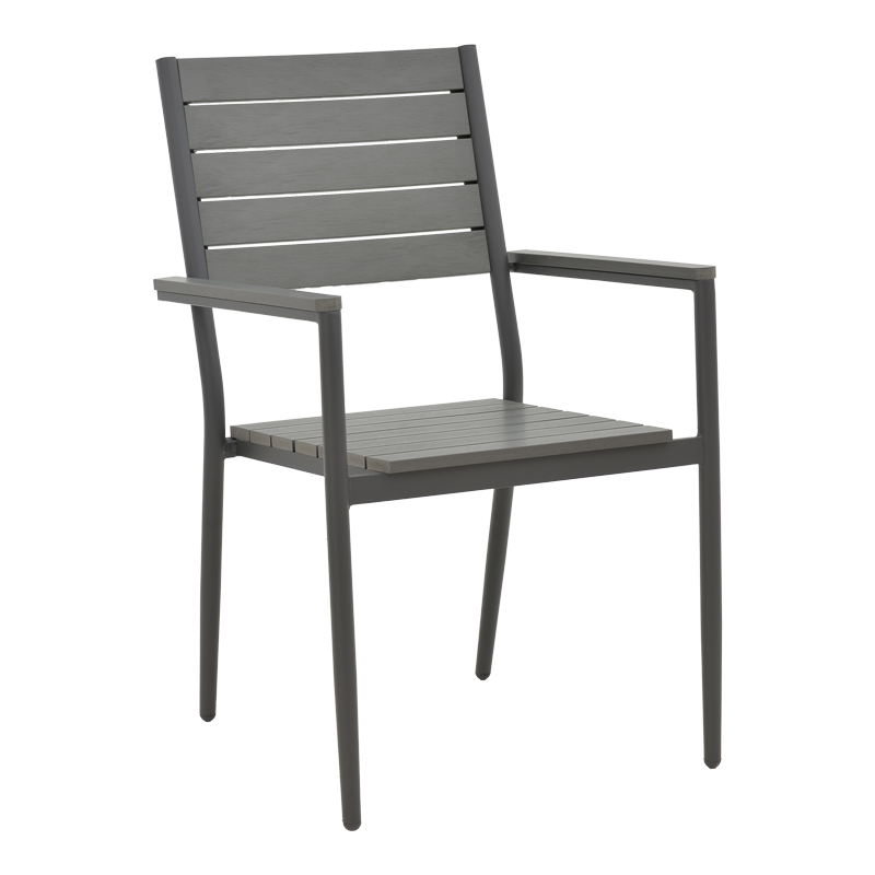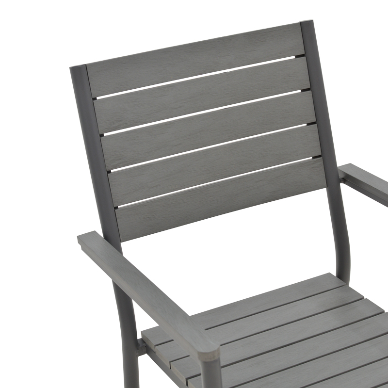 • Plywood: Το plywood είναι ένα σύνθετο υλικό που μοιάζει με ξύλο, κατασκευασμένο από ανακυκλωμένα πλαστικά. Χρησιμοποιείται συνήθως για την κατασκευή εξωτερικών επίπλων, όπως τραπέζια, καρέκλες, ξαπλώστρες και παγκάκια. Είναι εξαιρετικά ανθεκτικό στις καιρικές συνθήκες.