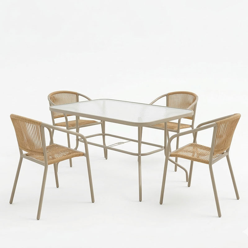 Τραπεζαρία Valor-Lindaria pakoworld σετ 5τεμ μέταλλο σε σαμπανιζέ και pe rattan σε φυσική απόχρωση 110x60x70εκ