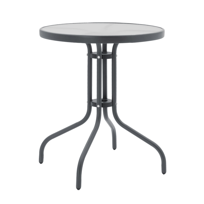 Tραπεζαρία Watson-Lindaria pakoworld σετ 3τεμ μέταλλο ανθρακί-γυαλί Φ60×70εκ