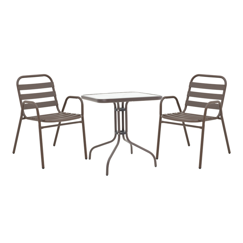 Τραπεζαρία Watson-Sussie pakoworld σετ 3τεμ μέταλλο καφέ-γυαλί 60x60x70εκ